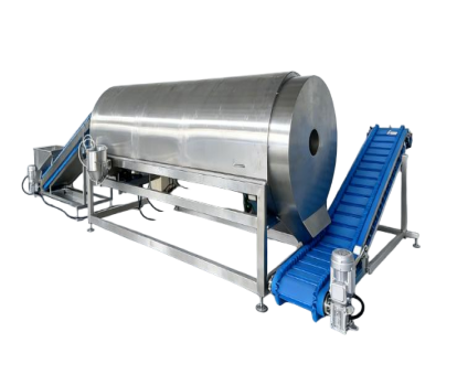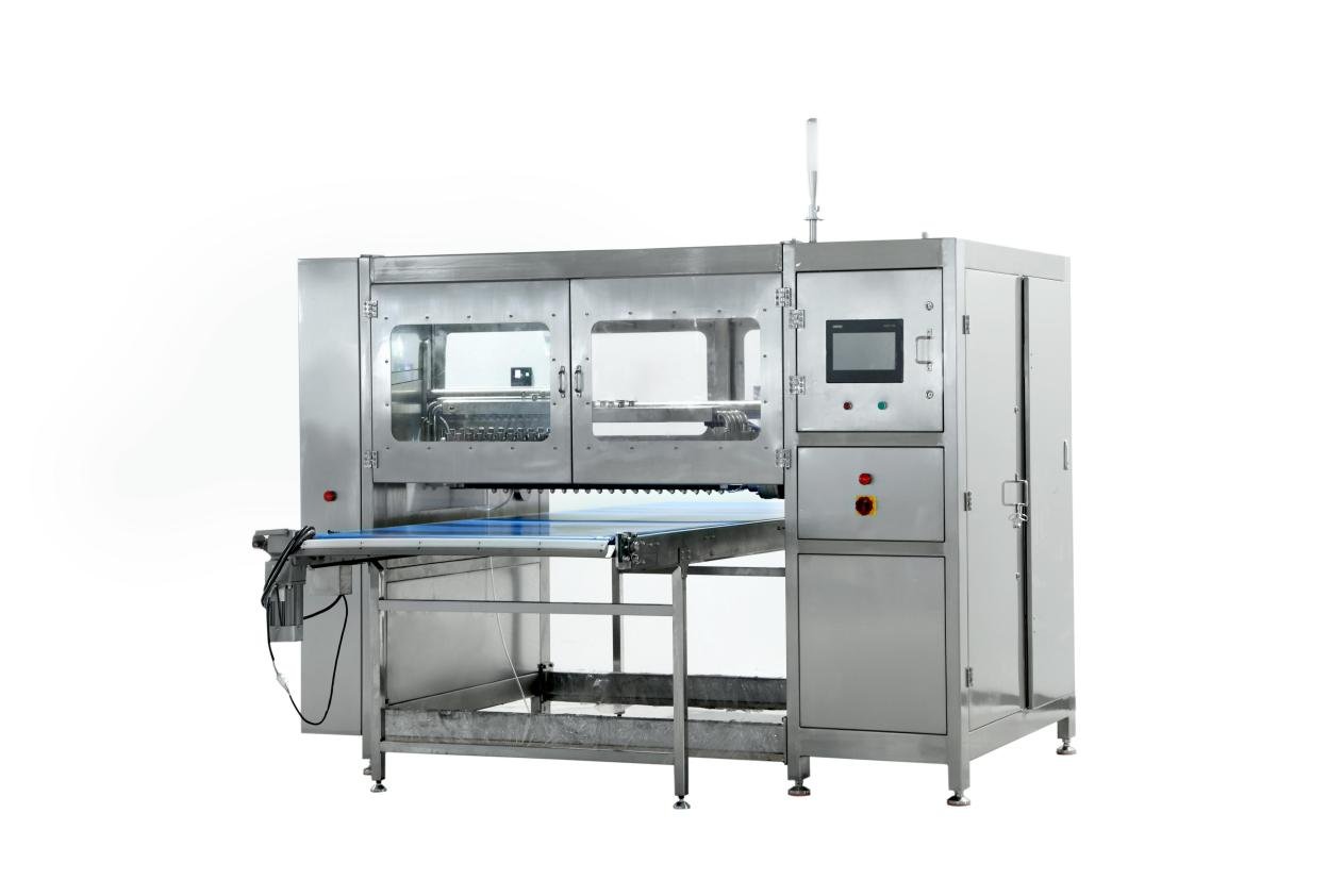 The integrated elevation system transfers coated products directly to packaging, maintaining maximum hygiene and operational efficiency.